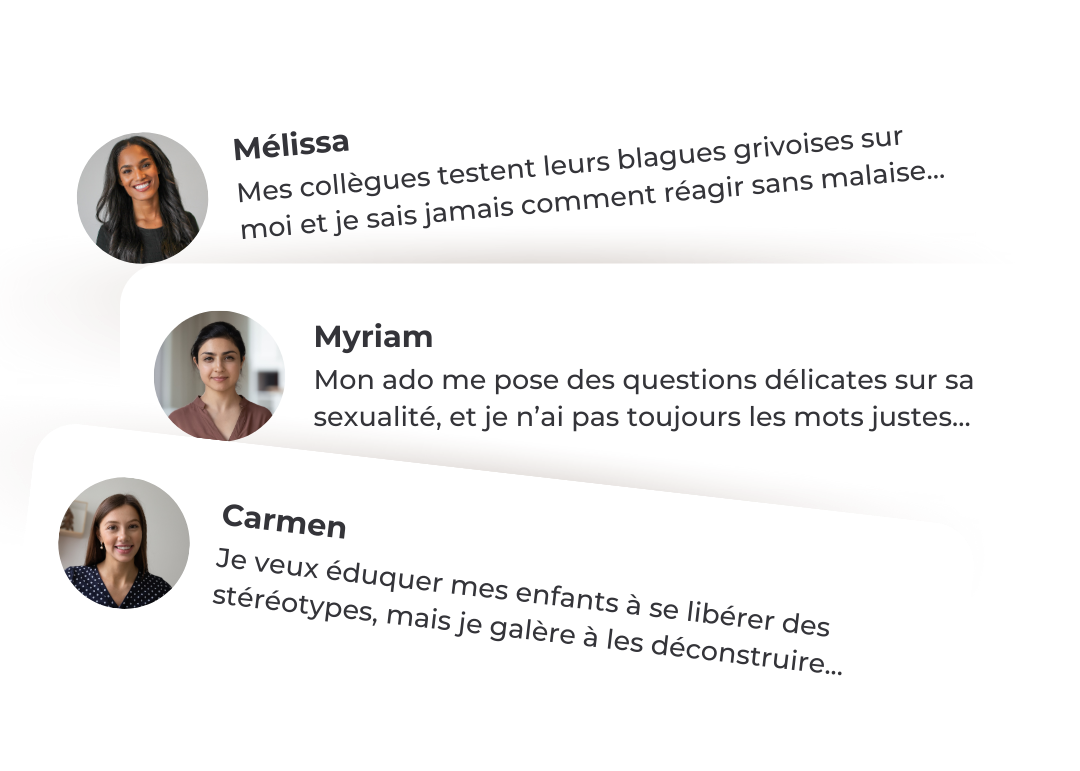 Entre les remarques sexistes au boulot, les stéréotypes de genre qui traînent partout, et les questions (parfois gênantes) des enfants sur la sexualité, il y a de quoi se sentir démuni·e, maladroit·e ou juste épuisé·e. Pas de panique, c’est normal ! Si tu ne sais pas par où commencer ? Bonne nouvelle : tu es exactement au bon endroit. Avec moi, fini la langue de bois !